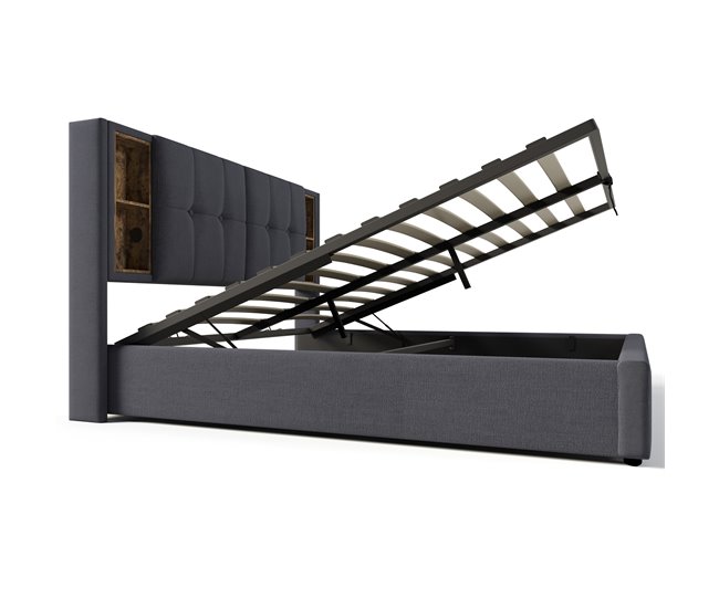 Uno de los elementos más destacados de esta cama es su cabecero con espacio de almacenaje integrado. Este práctico compartimento permite guardar libros, dispositivos electrónicos, mandos o cualquier objeto que desees tener a mano. De esta manera, mantienes el dormitorio ordenado mientras disfrutas de una mayor comodidad al alcance de tu mano.