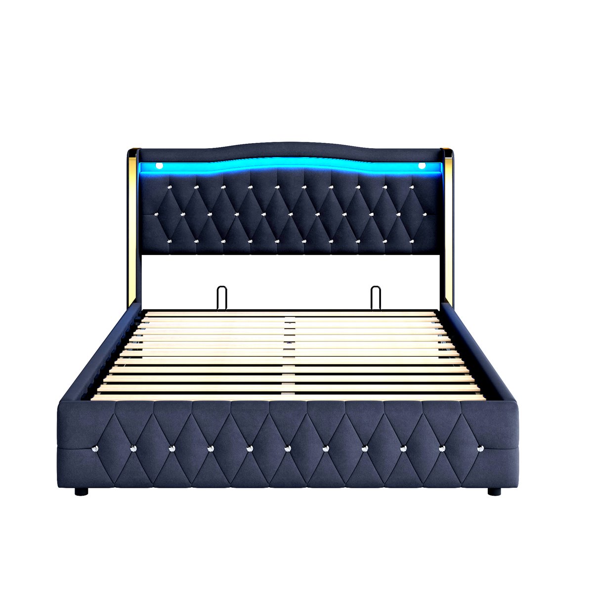 Equipado con un mecanismo hidráulico y un amplio espacio de almacenamiento bajo la cama para ropa de cama, ropa, etc., esta cama doble te ofrece un espacio de almacenamiento oculto para organizar fácilmente tus cosas.
