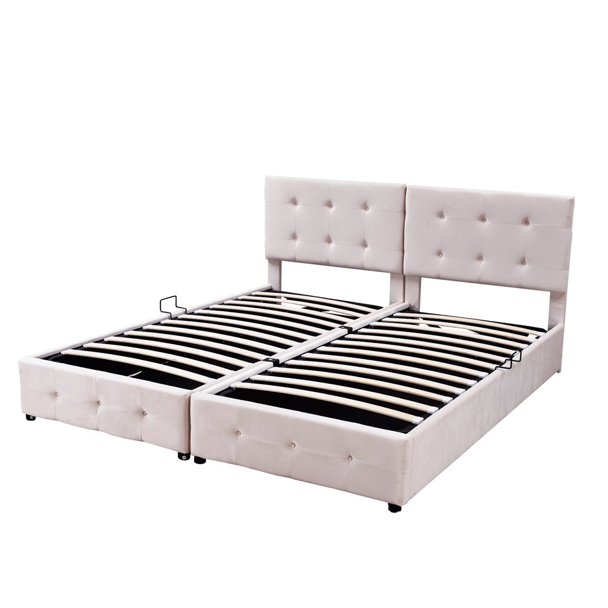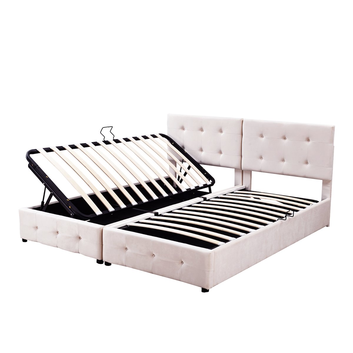 Cama contenedor acolchada 180x200cm en terciopelo – convertible en 2 camas individuales – Beige