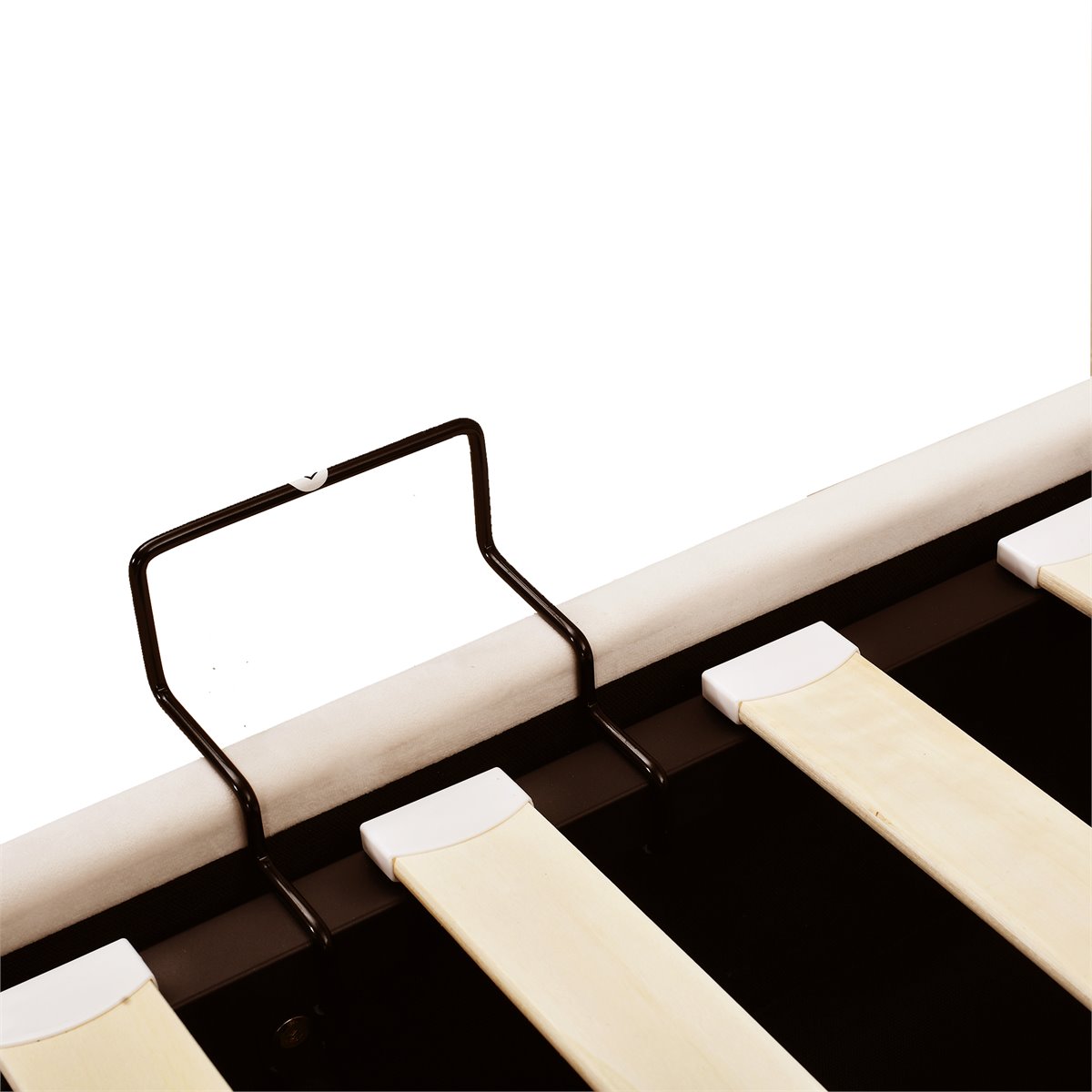 Con somier de láminas, no se necesita somier adicional; puede soportar hasta 300 kg. Esta cama es duradera y puede resistir cualquier desgaste.