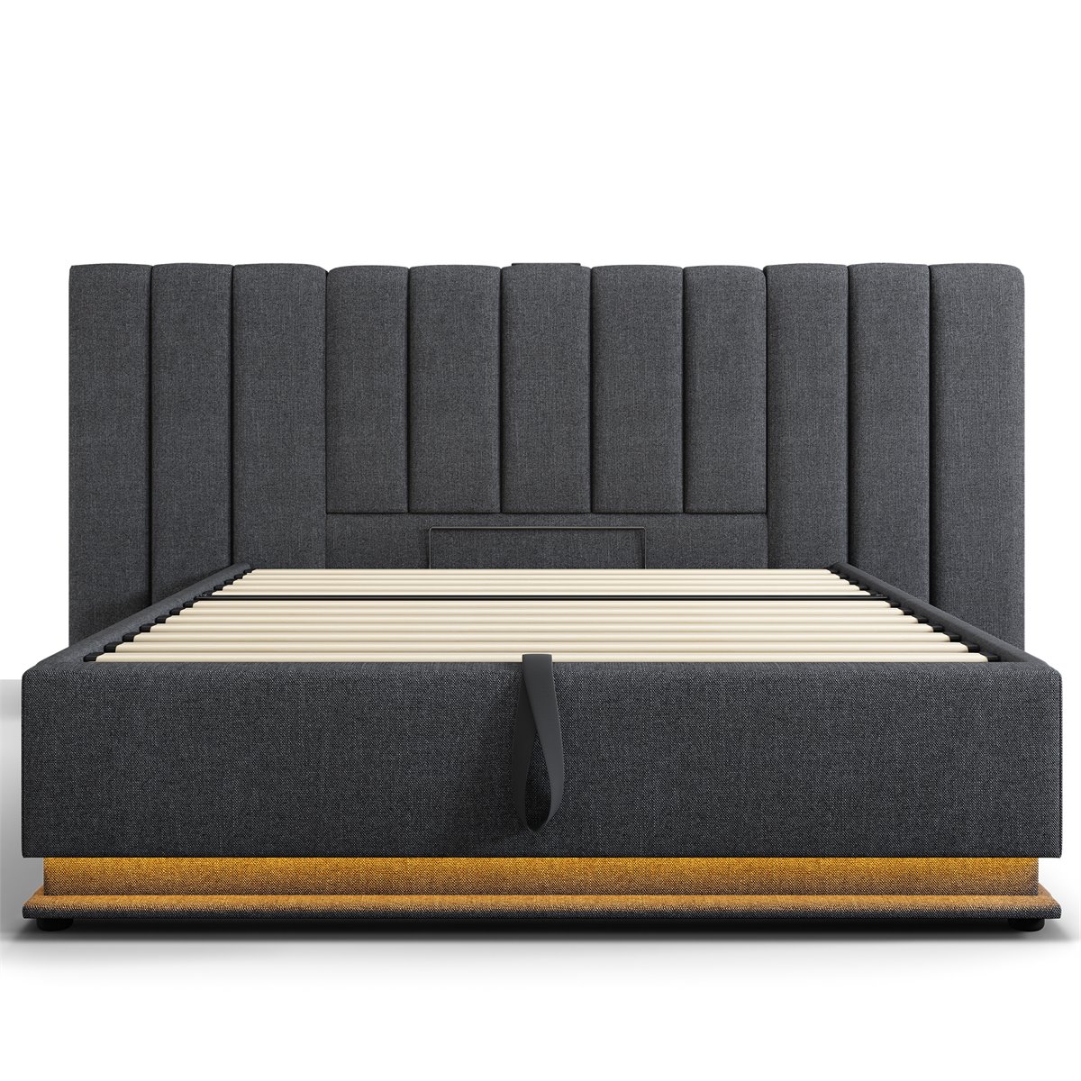 Cama contenedor tapizada de lino 160×200cm – con LED y carga – con somier – Gris