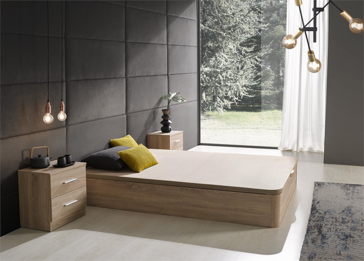 Nuestro Canapé de madera Estela tiene gran capacidad de almacenaje, además de un sistema de elevación hidráulico. Tapizado con Tejido 3D Transpirable. Características principales son: